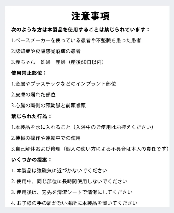 ※本製品の使用時間は、制限時間をなるべく超えないようにしてください。ご使用中に具合が悪くなったら、速やかに本製品の使用を中止してください。