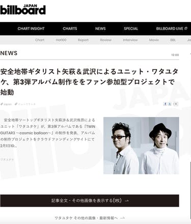 安全地帯ギタリスト矢萩&武沢によるユニット・ワタユタケ、第3弾アルバム制作ををファン参加型プロジェクトで始動