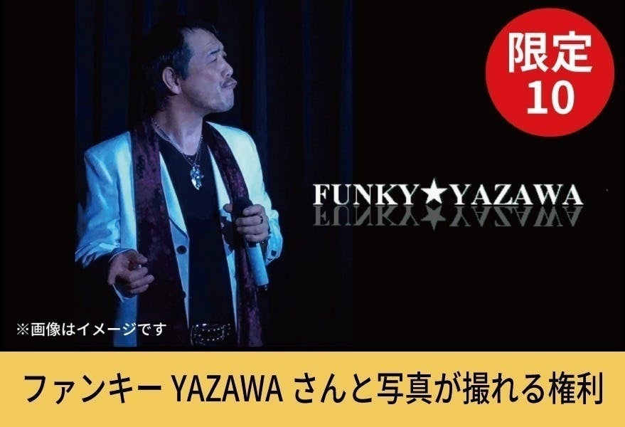今回、リターンに「ファンキーYAZAWAさんと写真が撮れる権利」を設定させていただいています。