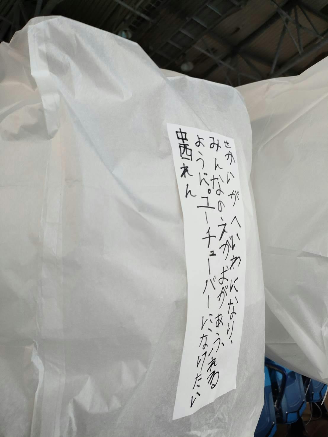 「世界が平和になり、みんなの笑顔があふれるように。ユーチューバーになりたい。中西れん」