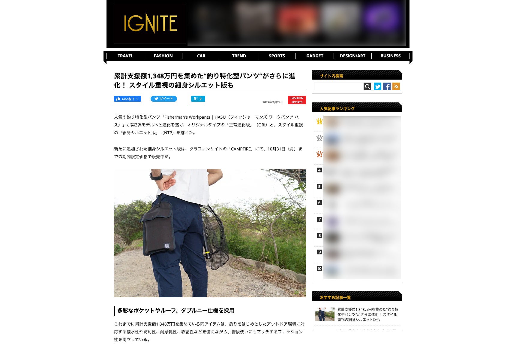 この度は「第三弾【釣り特化型パンツ】がユーザーの声により進化し細身シルエットVer.が登場」プロジェクト「Fisherman’s Workpants|HASU(NTP)」にご支援いただき、誠にありがとうございます。引き続き、SNSでのシェアなどでのご支援をよろしくお願いいたします。繊研新聞に掲載されました。2022年10月5日付の「繊研新聞」8面(新興・個性派)「いま注目の ヒト/コト/モノ」で、「第三弾【釣り特化型パンツ】がユーザーの声により進化し細身シルエットVer.が登場」プロジェクト「Fisherman’s Workpants|HASU(NTP)」が紹介されました。記事はBywater.jp(公式通販サイト)でご確認いただけます。※繊研新聞:繊維・ファッション業界紙。ファッションビジネス業界紙最大の発行部数。 業界にインパクトを与え続けるリーディングメディアです。引き続きご支援をよろしくお願いいたします。リプレイス前のMakuakeでは140万円を超えるプロジェクトでしたので、現在の状況はかなり苦戦している状況と言えます。「この人はきっと気になるはず」と頭に思い浮かぶ方が1人でもいたら、SNSなどでシェアしていただけますと、とても嬉しいです。ご支援よろしくお願いいたします。皆様の応援が力になります!Bywater(バイウォータ)