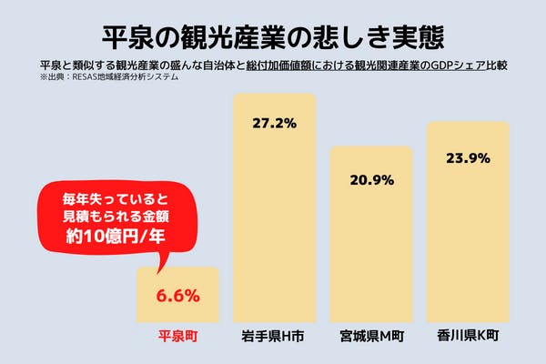 平泉町は、奥州藤原氏の短すぎる栄華、義経公と鎌倉幕府にまつわる物語など…雅でどこか儚い雰囲気が漂う観光地。実際に毎年多くの観光客が訪れてくれるので、賑わっているように側から見えるようですが、実は平泉は観光で全く稼いでないんです。
