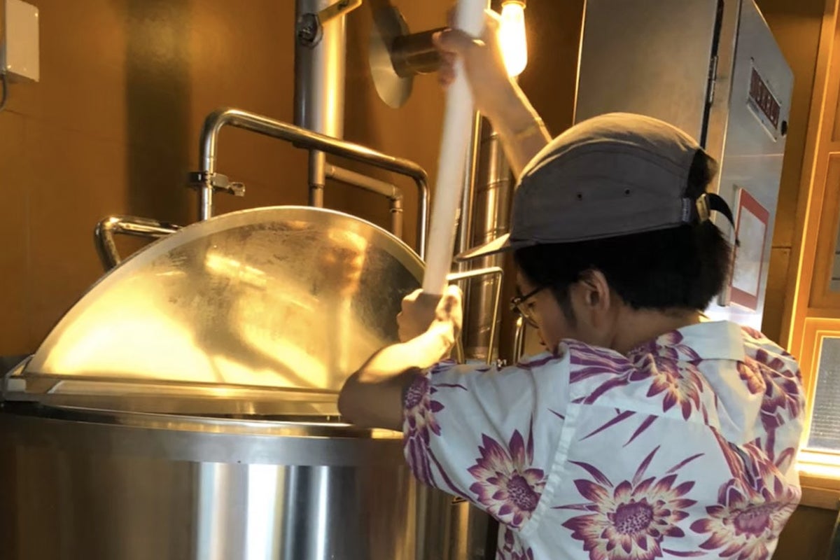 長嶺のBrewery KAEN(ビール工場隣のレストラン)にお手伝いに行ったとき、たまたまビール仕込みの最中でした。初めて見る醸造光景はチンプンカンプンでしたが、隣で見ていた社長(鍛島)が一言。