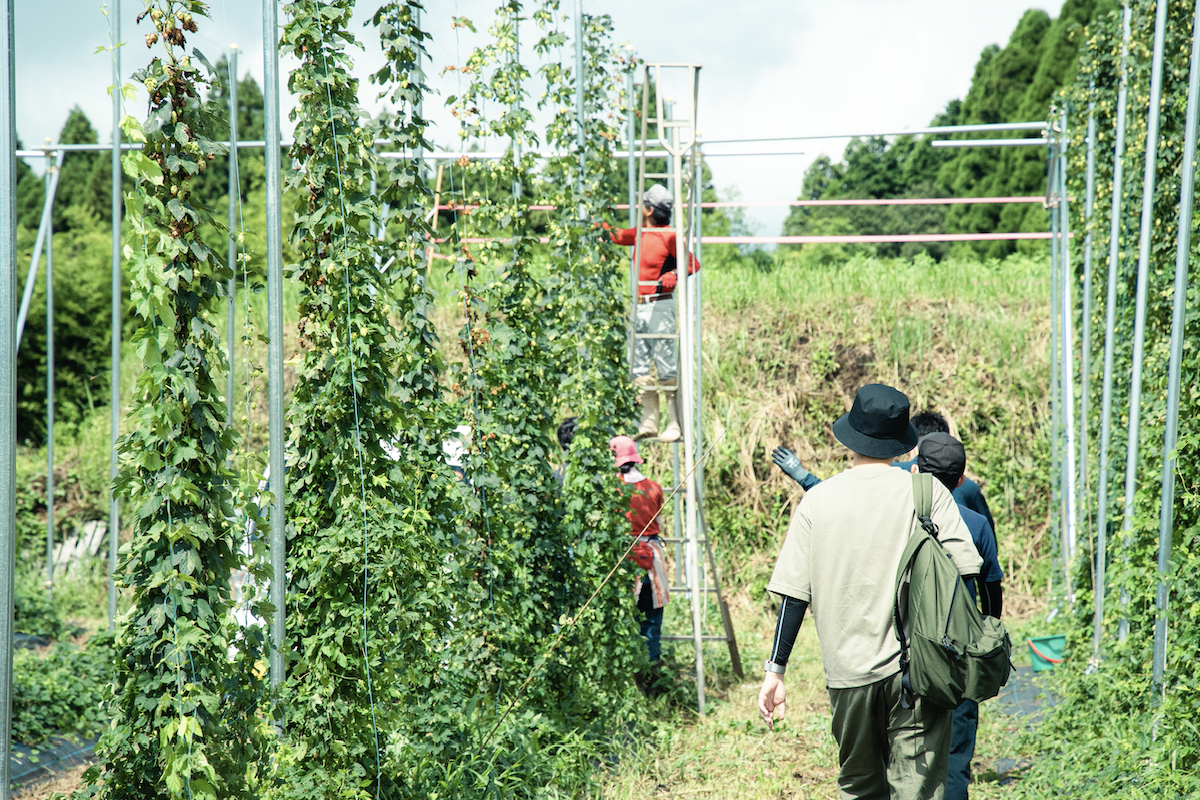 2022年8月には熊本・南阿蘇でホップを栽培している農家さんを訪ね、収穫のお手伝いをさせていただきました。熊本の蒸し暑い気候ではホップはあまり実ってくれず、栽培が難しいといいます。農家さんのチャレンジに対して、私たちもビールを通してチャレンジしていきたいと心から思います。