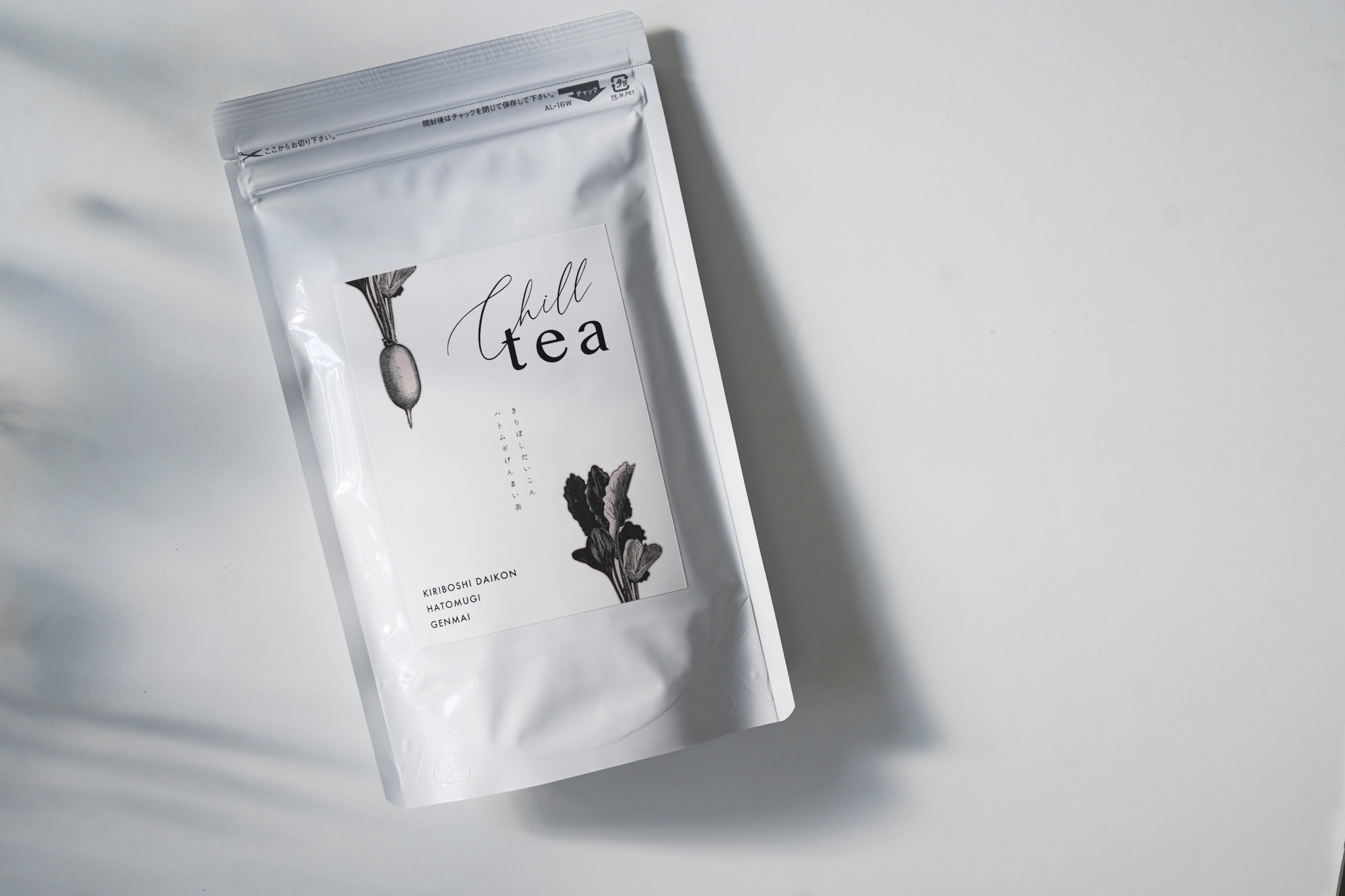 原材料名:有機玄米粉茶(有機緑茶、有機炒り米)(国内製造)、大根、ハトムギ