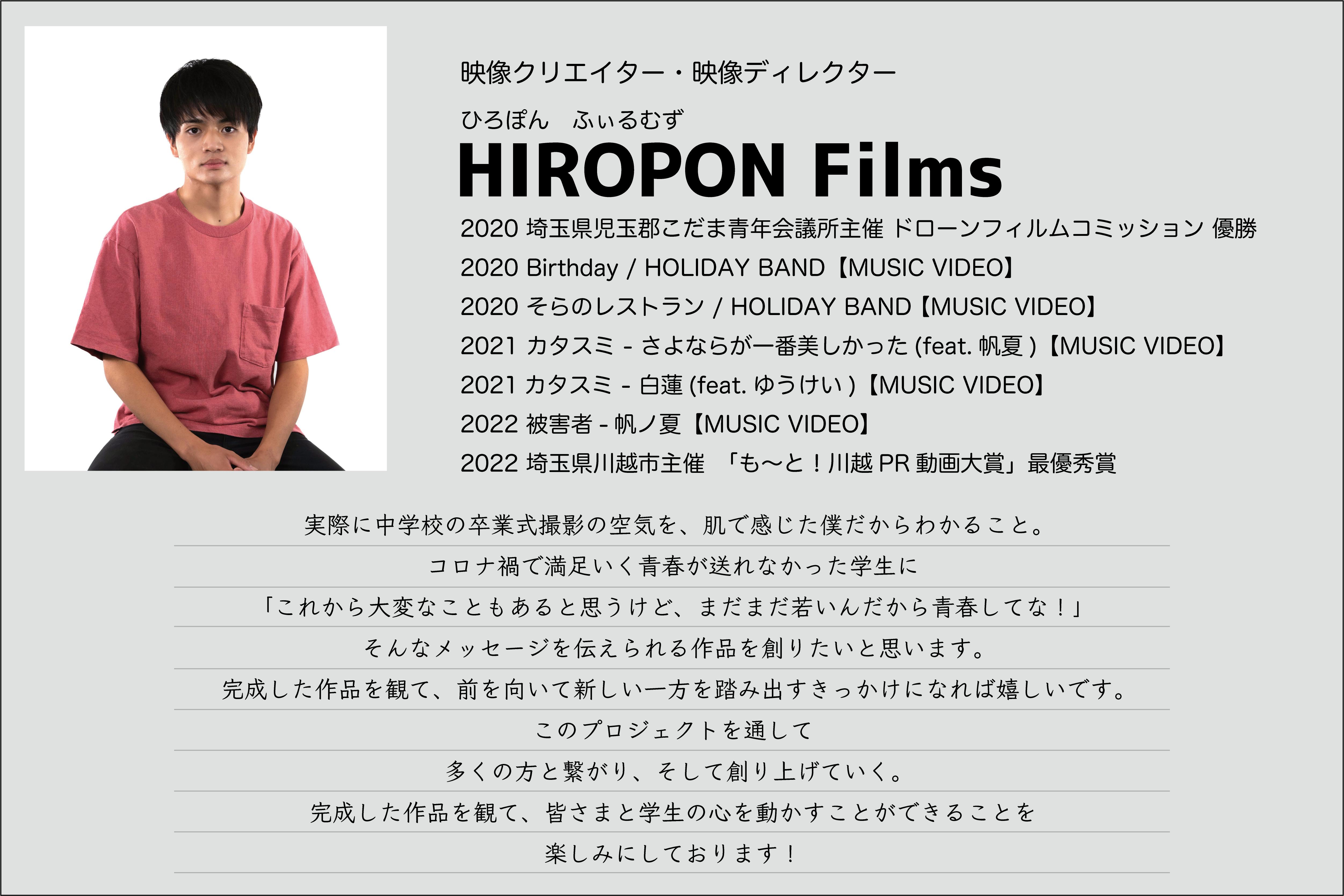 起案者のHIROPON Filmsから皆様へ、簡単ではありますが