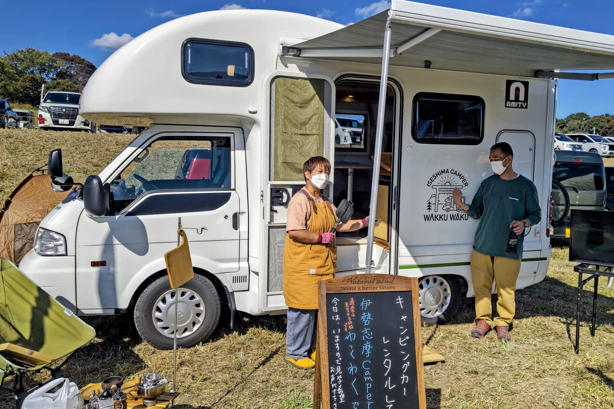 にルーフトップテントを乗せた車両も興味津々に