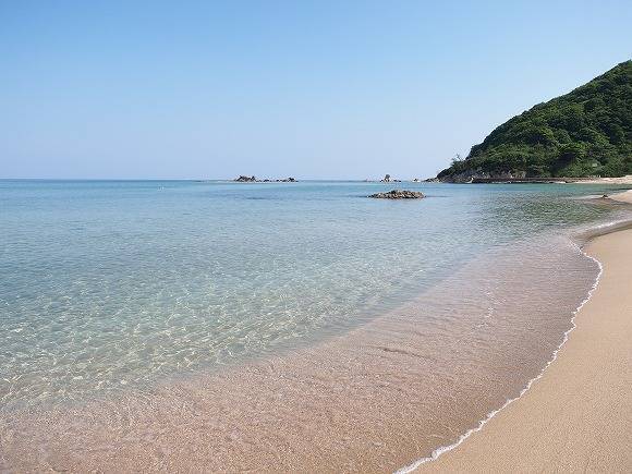 日本海側の風景としてはちょっと意外な、こんなにきれいな砂浜もあります。