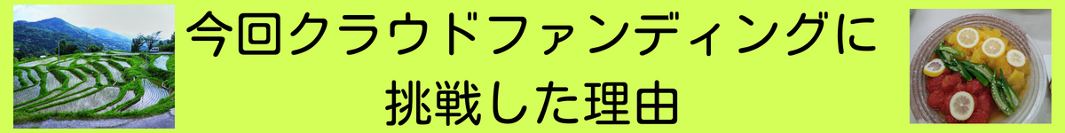 今回店長の仕事を若手に譲って離れるのを機会に、実現したい目標があり、初めてクラウドファンディングに挑戦させていただきました。