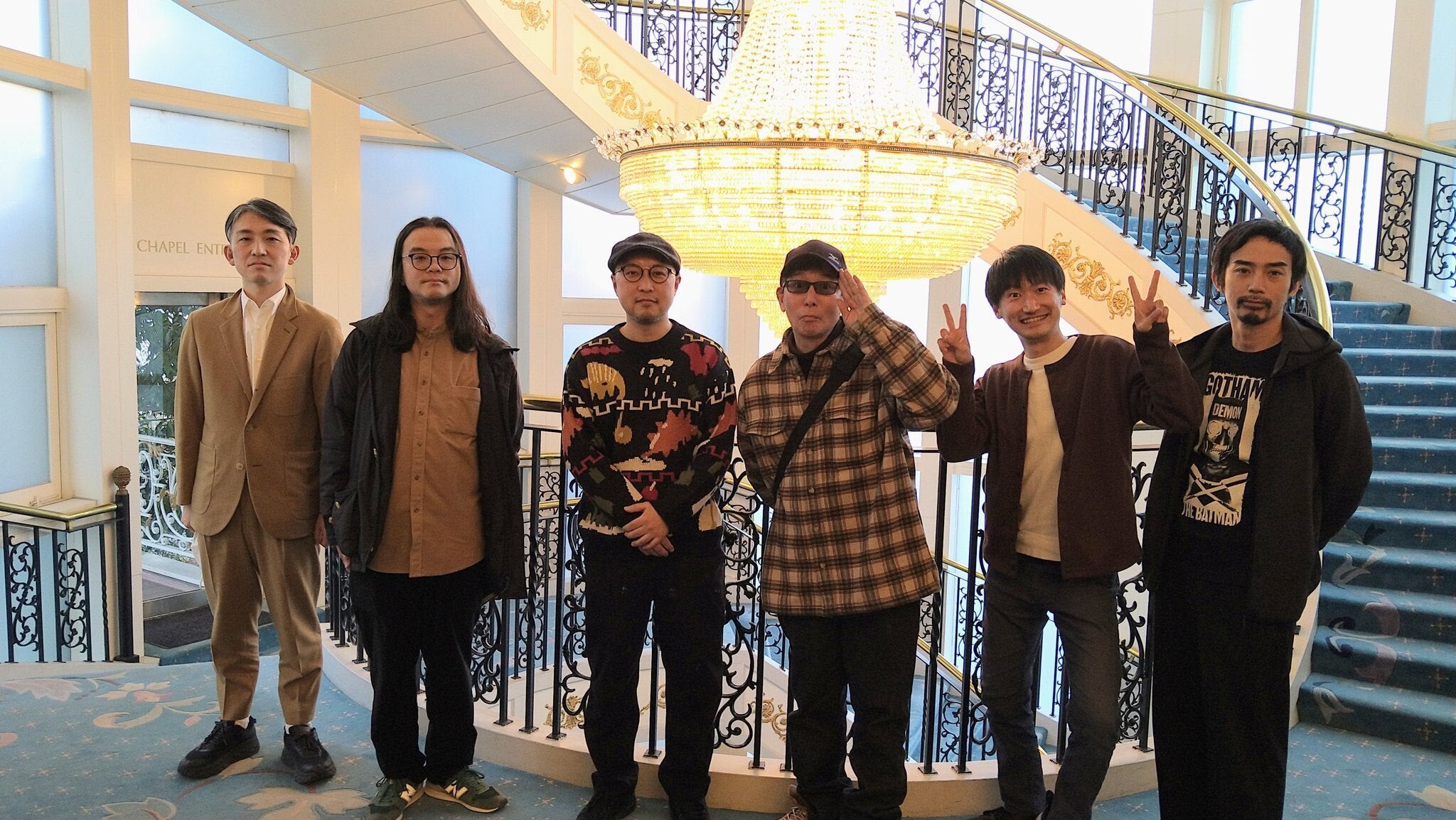 八王子日本閣にて、監督たちの集合写真。アライジンさんが光平監督の代理として出席。