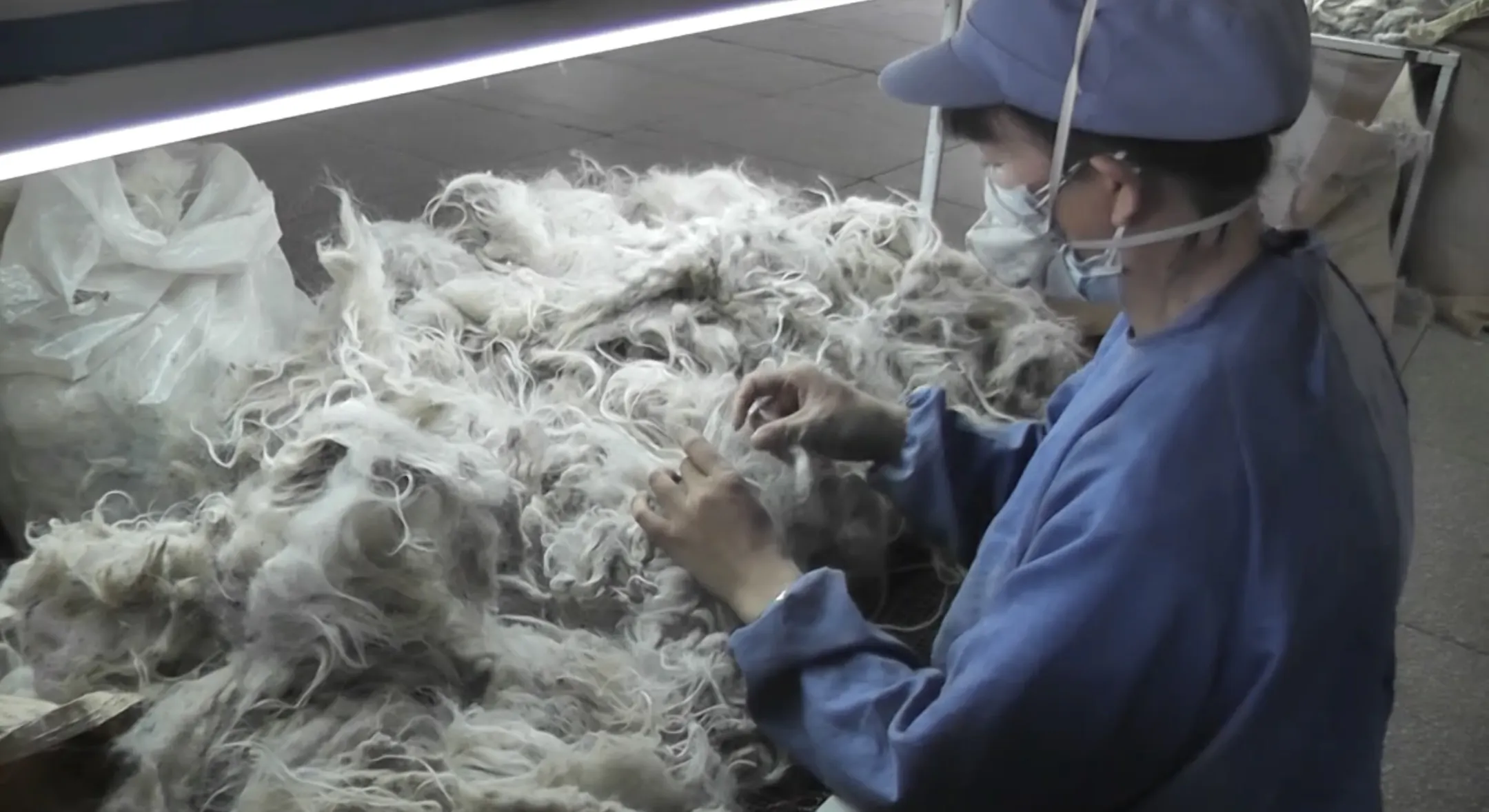 細かな雑物や、産毛以外の太い毛を人間の手で丁寧に選別していきます。