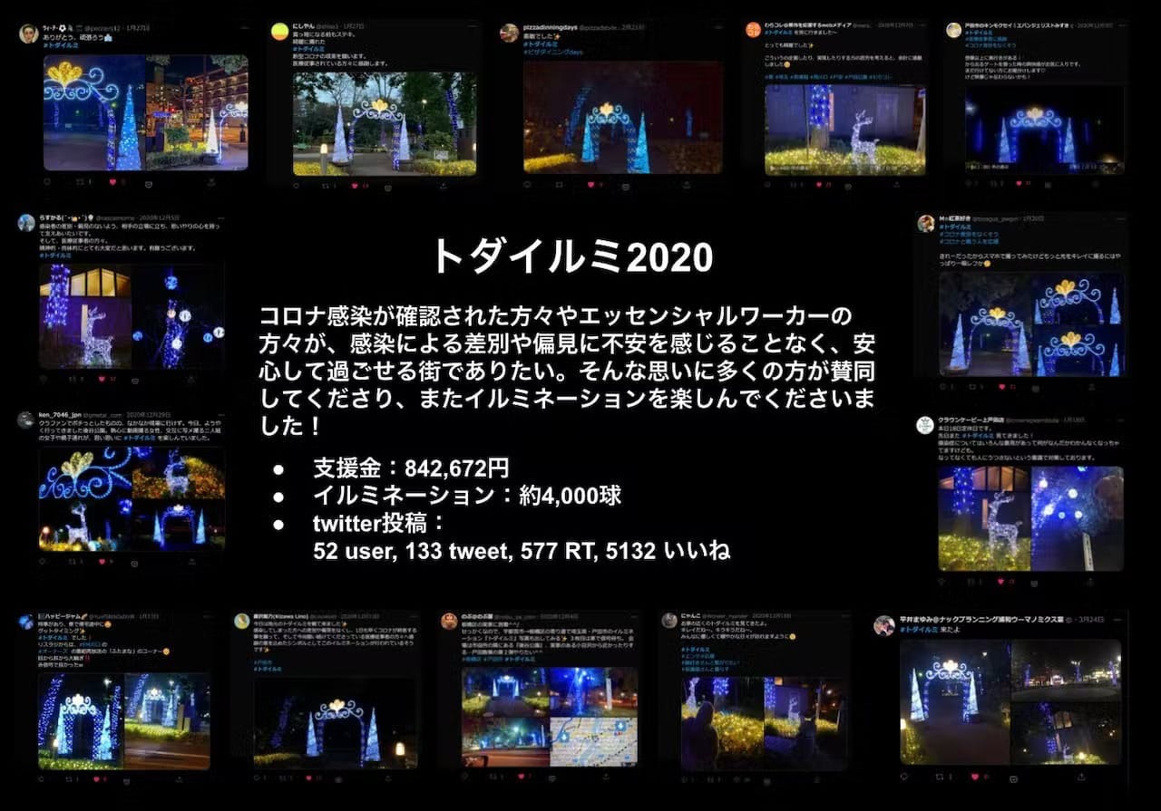 コロナ感染が確認された方々やエッセンシャルワーカーの方々が、感染による差別や偏見に不安を感じることなく、安心して過ごせる街でありたい。そんな思いに多くの方が賛同してくださり、イルミネーションを楽しんでくださいました!