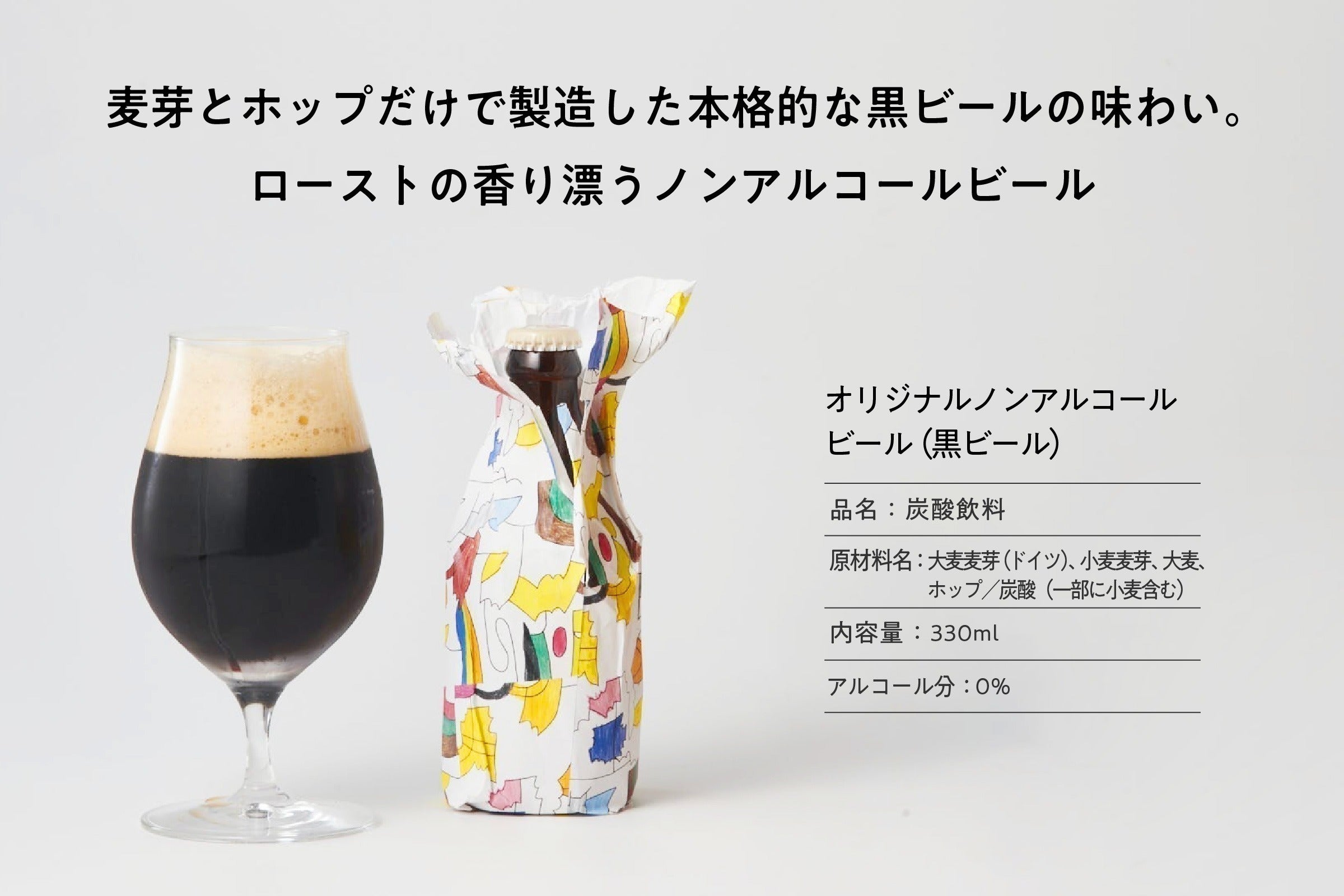 そこで、麦芽とホップだけでつくった、特別な「ノンアルコールの黒ビール」をご用意します。