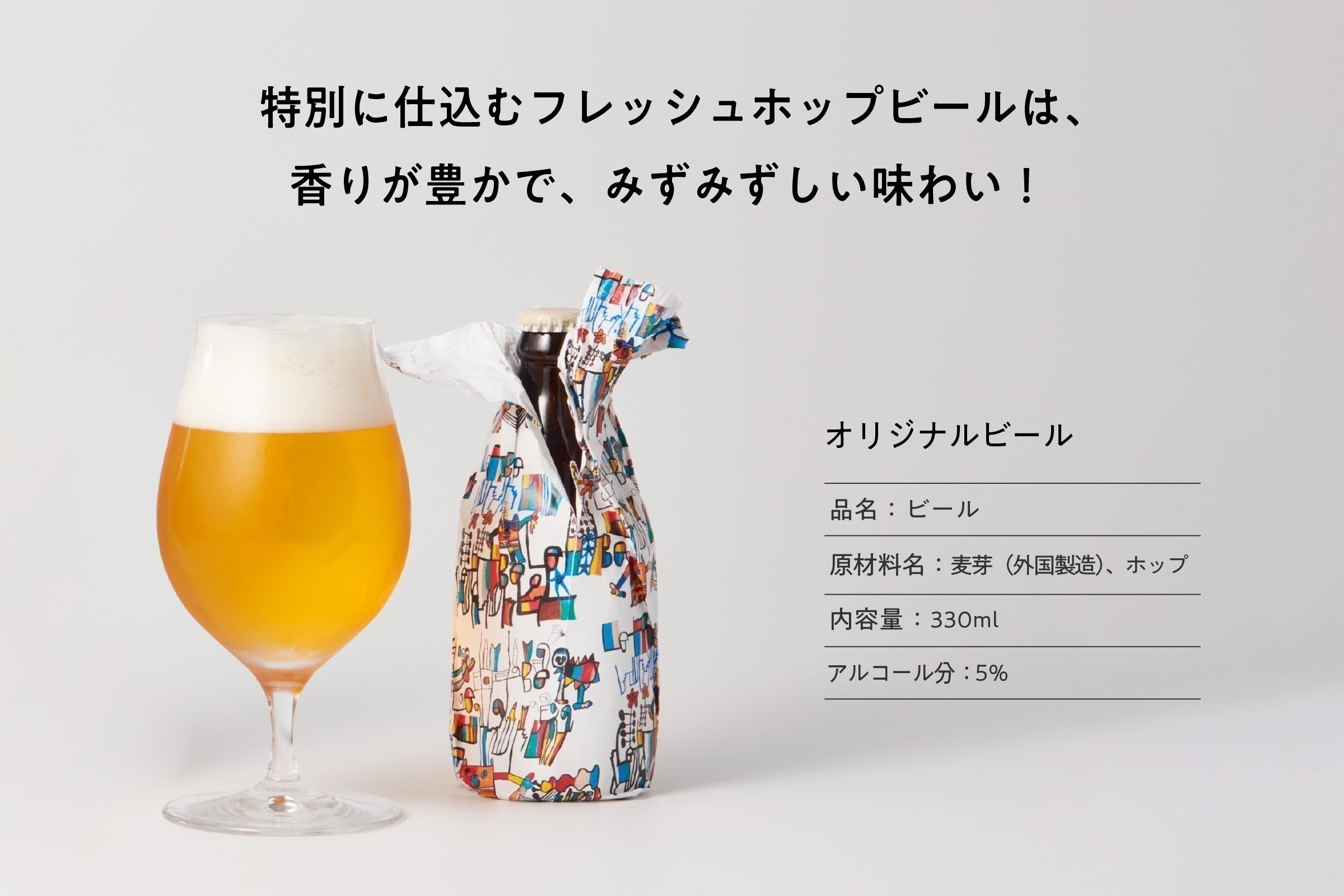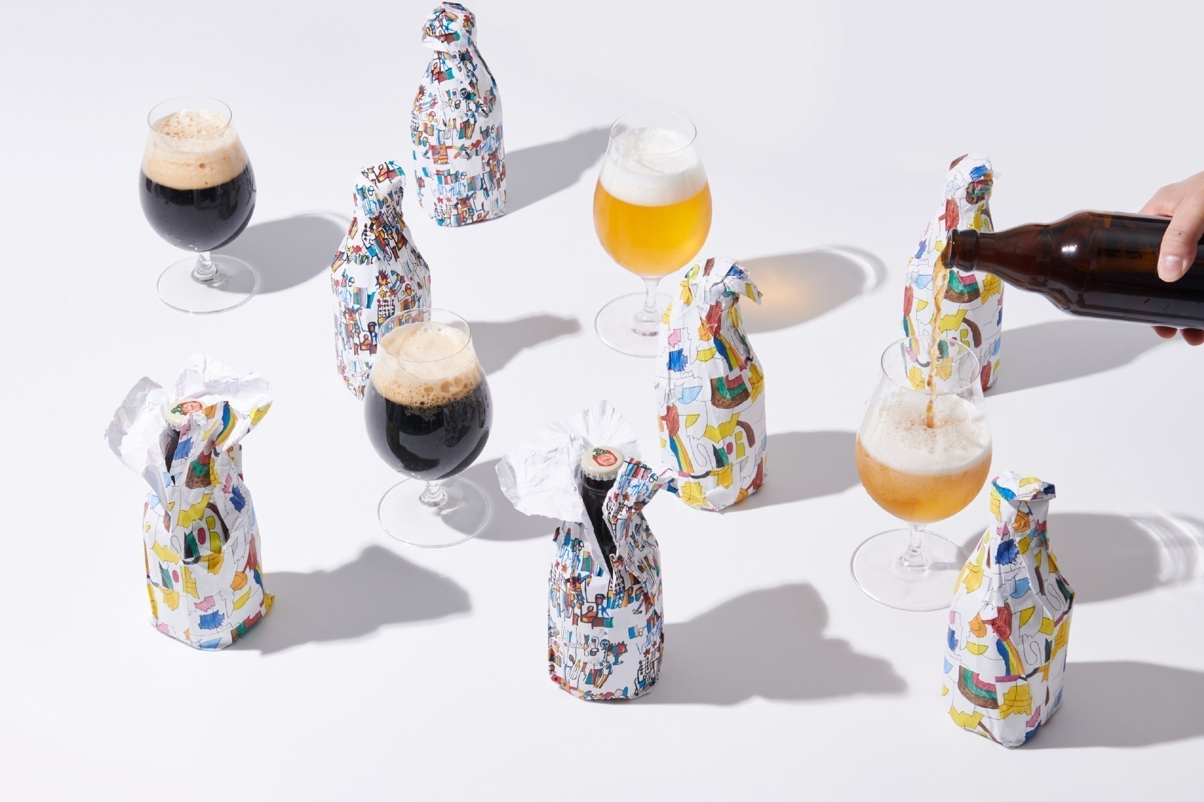今回ギフトとしてお届けするにあたって両社で議論を重ね、瓶をアートで包むという、初めてのスタイルに挑戦します。ギフトボックスを開けた瞬間からわくわく感が広がり、「ポン」と瓶を開けて、こだわりのビールの味、香り、のどごしまで。五感をすべて使って楽しんでいただきたいと思いました。