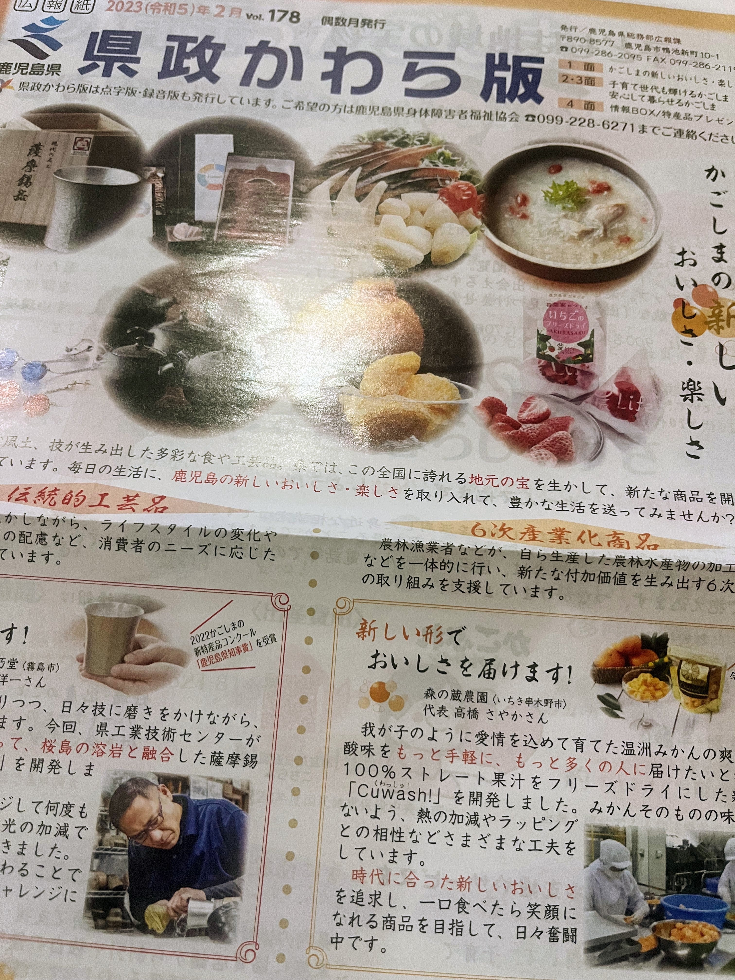 県政かわら版 2月号に掲載されました!「全国に羽ばたけ大里みかん」鹿児島県全戸へ配布される県政かわら版もちろん、この結果はたくさんの方々にご協力をいただいた結果。自分の信じる歩む道にはチャント道筋を通せている。そう思いました。改めて、認めていただけているアクションが起こせている。一つ一つは小さくても、その時は決して評価されなくても、点と点が結ばれて線になり、円になったら、大きな力になる。大きくなるかなんてやってみないと分からない。行動していたら必ずチャンスは来る。+対比効果を考慮して。次の挑戦に挑むため、もう少し皆さんのご支援、ご協力が必要になりそう。現在クラウドファンディング136%達成していますが、次のチャレンジに挑むためにはまだまだ増産できるようにならなければいけません。是非お力をお貸しください。全国に、鹿児島のみかんを、いちき串木野市のみかんを、大里みかんをPRするために。どのようなチャレンジをするかは、今はまだ言えませんが、どこまで認めてもらえるか、皆さんのご協力・ご支援がいただきたいのです!ぜひ!よろしくお願いします!https://camp-fire.jp/projects/view/625030?utm_campaign=cp_po_share_mypage_projects_show