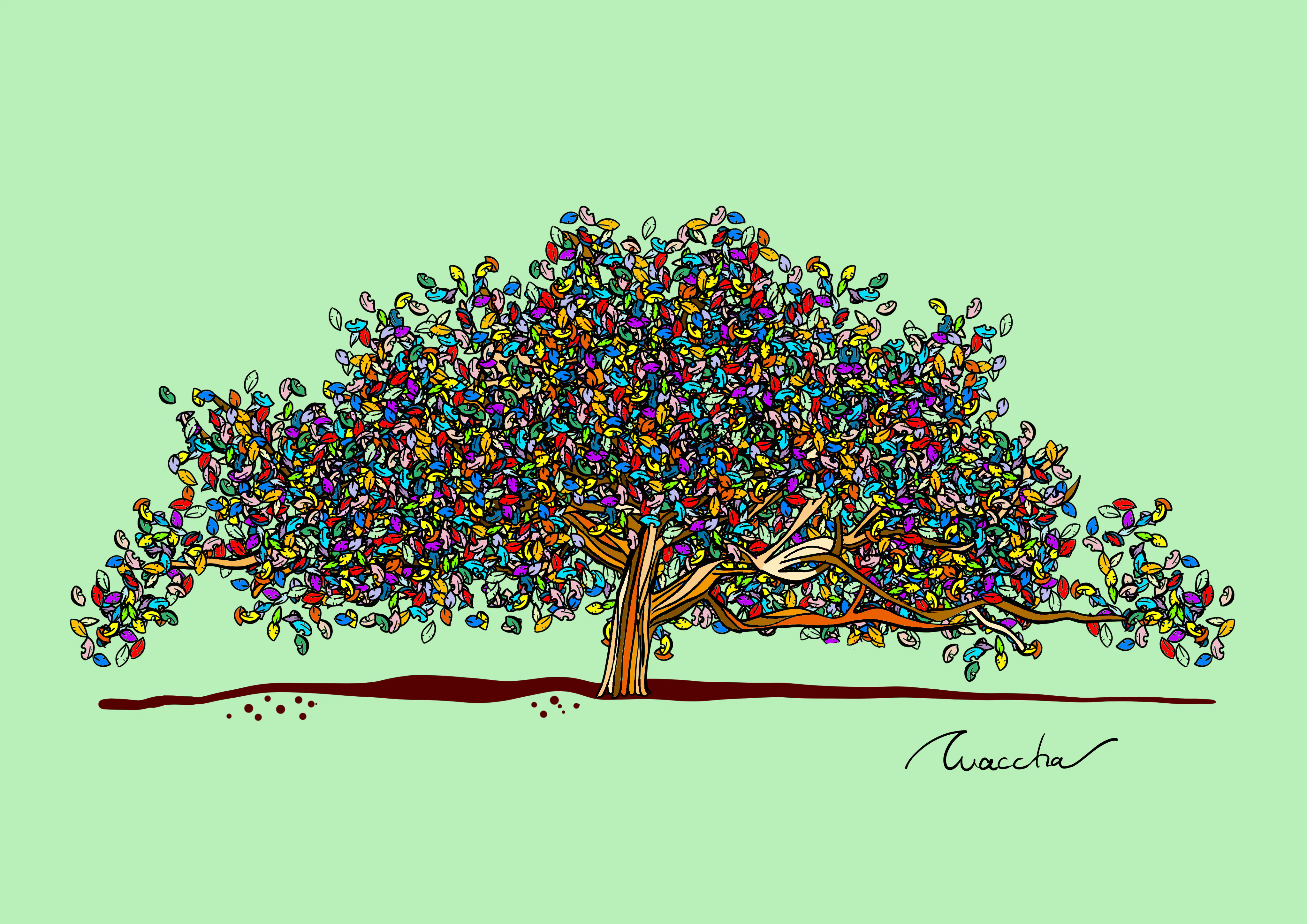 小さい頃から絵を描くのが好きということもあり、2020年からwacchaという名前で活動をはじめて、これまでもイベントでの出展や、個展やグループ展への参加、ライブペイントや壁画制作など、精力的に活動しています。