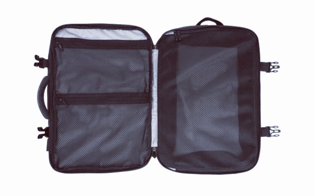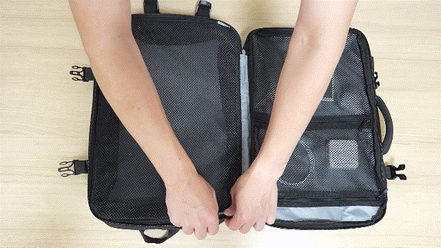 180度開閉できるメントルーム設計。収納物の確認がしやすく、出し入れもスムーズに行うことができるので、2泊程度の出張にもこのリュック一つで可能に。
