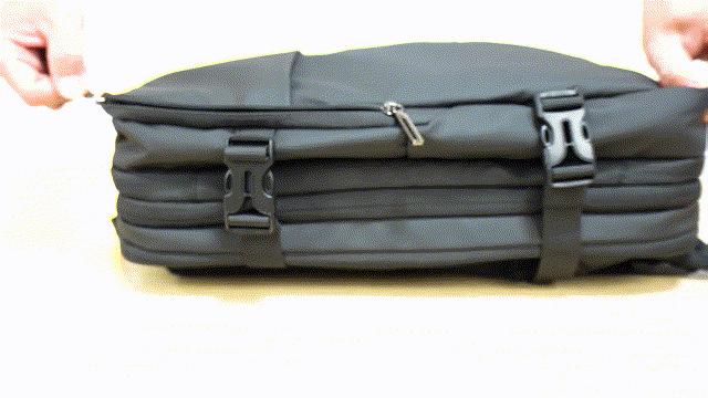 荷物の量に合わせて容量を調節できます。普段も23Lと大容量ですが、ファスナーを開くことで39Lまで容量をアップできます。