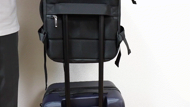 キャリーケースにそのまま付けることのできるキャリーオン対応。これにより出張の際も背負わなくて済むので身動きも楽になります。