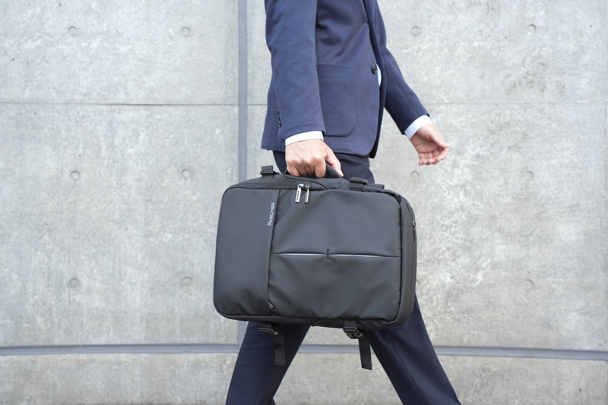 リュックと手提げの両方で持ち運べる2WAYタイプ。自転車通勤などの際はリュックとして背負い、営業先に訪問する場合は手提げとして手に持つなど、シーンによって使い分けられるのがメリットです。