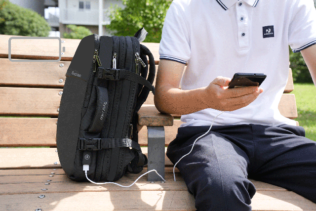 USB充電ポート付き、移動中でもスマホに充電することが可能。