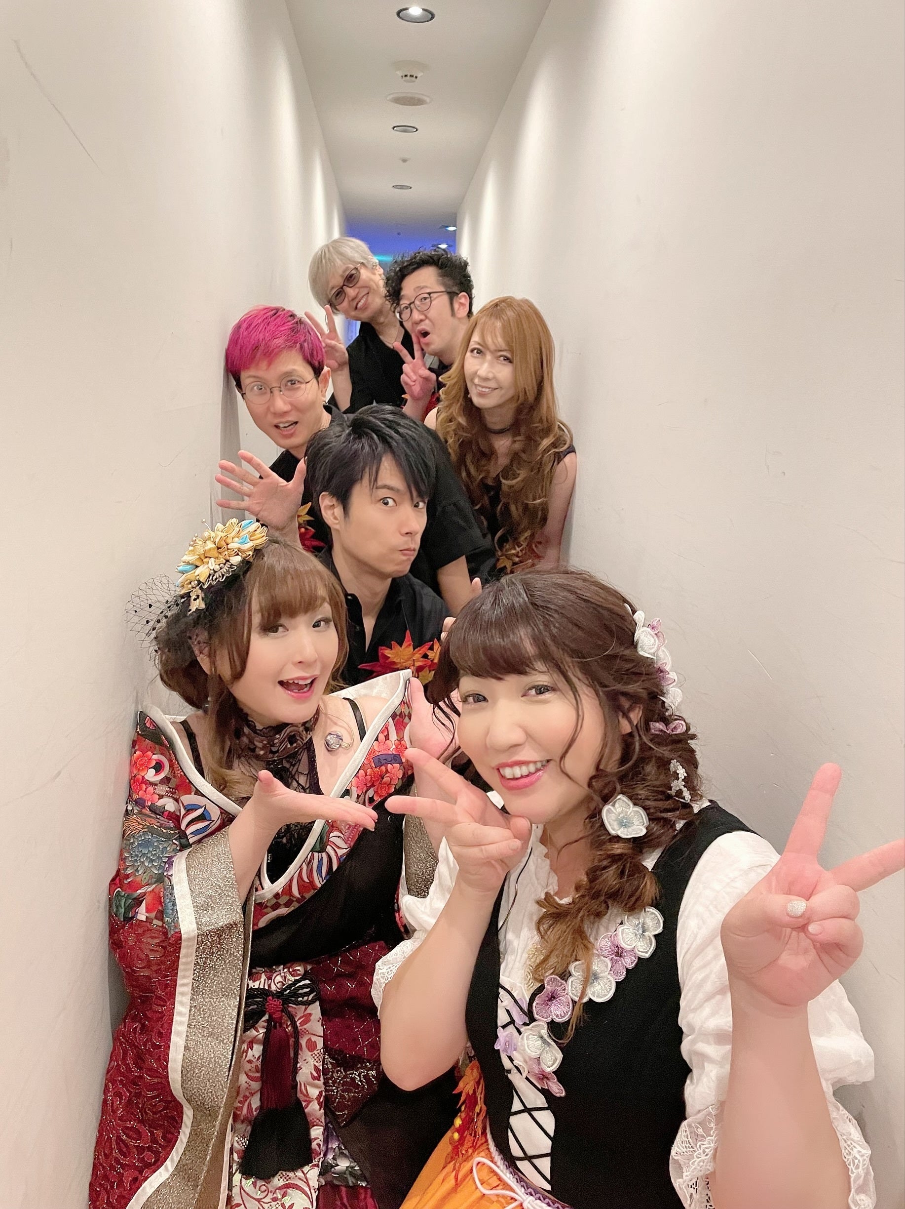 しもーっす!霜月はるかです。全体公開記事です。先週11/19(日)に、同人音楽活動20周年記念ライブ『霜月はるか “Maple Leaf” 20th Anniversary LIVE』追加公演を無事開催できました。追加公演の開催も本CFのご支援あってのことでしたので、改めてありがとうございます!2週連続で活動の集大成ライブが開催できて、楽しすぎる音楽の時間を過ごせたこと、アーティストとして本当に幸せでした。追加公演セットリストはこちら。昼公演はLv.1ライブリバイバルという性質上セトリは11/12と変わらずですが、だからこそ生バンド演奏での時間をよりかみしめながら、楽しむことができました。何度もお話していますが初期の楽曲は当時の細かいデータが残っていないモノも多く、原曲通り再現しようと思っても難しいので今回のWYRDRADバンドメンバーと共にアレンジから構築していき、コーラスやハモリもこのライブのためにたくさん再収録しました。このメンバーだからこそのサウンド、とってもお気に入りです!そして19日の夜公演は、ゲストも増えてよりスペシャルなライブでした!同人活動ではハモリ好きのわたしがハモりたい欲求で、いろんなシンガー友達とツイン・トリプルボーカル曲を作ってきたので、同人の歴史を辿る上でそんな側面をたくさんお見せできて、何よりいっぱいハモれてとーーーっても楽しかったです!ゲストの中恵光城ちゃん、片霧烈火たん、茶太りん、本当にありがとう!!配信アーカイブ自分でも見ましたが、楽曲的にもバラエティ豊かになったし、バンドの演奏もよく見えて素敵だし、ゲストさんいると華やかだし、アンコールのテンションが楽しすぎたり、見どころ満載ですヨ。昼夜共に、配信アーカイブの販売は本日11/26(日)19:00まで、視聴期限は23:59までです!CFリターンも視聴期限は同様ですので、是非最後まで楽しんでくださいね!!追加公演配信チケットはこちらそういえば今回のライブ衣装について。CFストレッチゴールにて決定した新衣装制作、今回はLv.1ライブのリバイバルがあったので、Lv.1の時に着た民族衣装(ディアンドル)のイメージで新規に制作しました!アルバム『Maple Leaf BOX II』のCF限定盤ジャケットをお願いする際にTivさんに、コンパスちゃんの衣装にもそういう要素を取り入れてほしいとお願いして、ジャケットで描いてもらった緑と黒とオレンジが基調のデザイン。こちらをベースに、いつもお世話になっている衣装制作の水野さんに、わたしに合った&ライブ映えして脱ぎ着しやすい形で作っていただきました!素晴らしいバンドメンバーと。もともと好きな民族衣装のファンタジー要素もありつつ、今までに無いオレンジが印象的なカラーリングも、とってもお気に入りの衣装になりました!今後アーティスト写真や、他ライブ等でも着ていこうと思います(*´ω`*)感想などでちょこちょこ、今回のライブ音源や映像を残してほしい~という要望をいただきまして、わたしにとっても記念ライブで形に出来たら嬉しいので数曲でもちょっと権利OKな曲のみでも実現出来ないか検討してみようかと思います!ライブグッズの事後通販もスタートしました!在庫限りですので欲しい方はお早めに~。会場で完売してしまったパンフレットも、BOOTHのみデータにて販売しております!アルバム等CDや同人アイテムと一緒に買いたい方→ しちごさん。&CRAFTSCAPE BOOTH ※価格は送料・梱包・手数料込過去ライブグッズ等と一緒に買いたい方→ ティームストア ※送料・梱包・手数料別-------------19日は久しぶりにお友達や関係者さんに来てもらえたり、素敵なスタンド花をいただいたり、お手紙やプレゼントのお心遣いもたくさんいただき、お気持ち本当に嬉しかったです!なんだかようやくコロナ禍あけて色々が元に戻ったなぁ、という感じですね。今回は皆さんの合唱もたくさん聴けて嬉しかった!12日にいただいたものも含め、お手紙ゆっくりじっくり読ませていただきました。皆さんの想いや近況や感想やエピソード、聞かせていただくと自分の活動が届いているんだなぁ、という実感が出来て本当に嬉しいです。特にこちらの素敵なフラワーアレンジメントとイラストやコラージュが可愛い寄せ書き企画、声かけたりまとめたり企画したりするのすごく大変だと思うので主催さんありがとうとっても嬉しかったです!ひとつひとつのコメントが絵具皿になってたりするとこも、作品モチーフを取り入れていただいてて幸せ!参加者さんたちのスマイルリンクも嬉しいです。ありがとう!!本CFプロジェクトのリターンも昨日デジタル系リターンをいくつかメッセージにて送付完了しました。残すところお礼ボイスメッセージのみ…12月初旬頃までにはお送り出来るよう頑張ります!ではではまた!