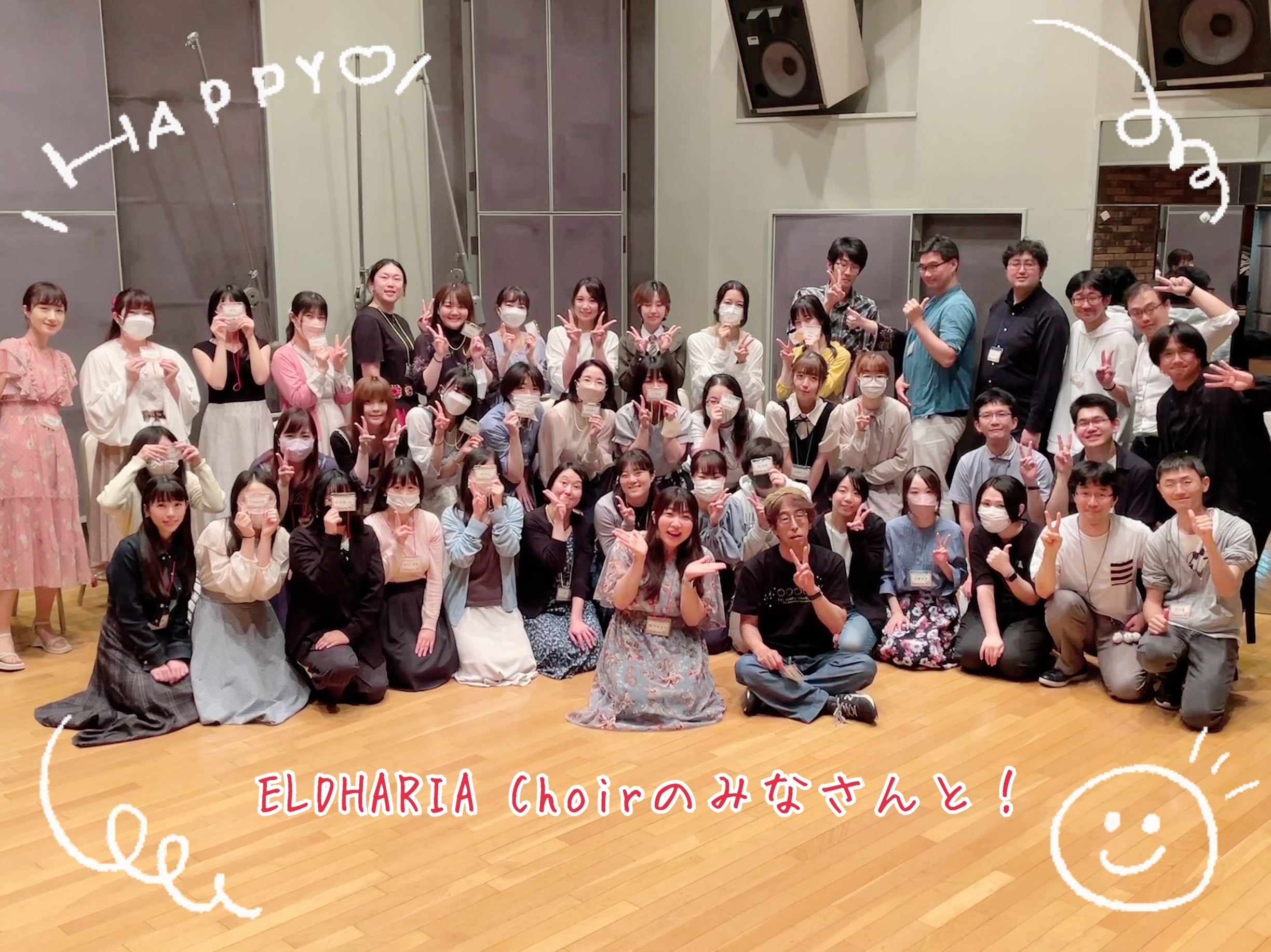しもーっす!霜月はるかです。色んな方に見てほしい内容なので、全体公開記事です。制作とライブの色々に追われて遅くなってしまいましたが、ずーっと書こうと思っていた公募コーラススタジオ収録の想い出を書き残しておこうと思います。今回のCFストレッチゴールで決定した、コーラス公募企画。合唱部出身のわたしは言わずと知れた(いや言ってるか)コーラス好きなので、いつか自分の曲にたくさんの方にコーラス参加してもらう曲を作ってみたい!と常々思っており、今回のアルバム『Maple Leaf BOX II』書き下ろし曲でついに実現できることになってめちゃめちゃワクワクでした!とはいえあくまで公募、応募してくださる方がいなければ成立しない…ドキドキしながら募集を開始しましたら、なんと約100名もの参加希望をいただきビックリ!!全ての方のサンプル音源に、わたしと編曲の岩垂さんとで耳を通し、パート毎のバランスや声の相性、混ざり具合などを慎重に考慮して、女声3声、男声1声の4パートそれぞれ11名ずつ、現地収録に参加いただく方を選ばせていただきました。事前にZOOMでオンラインの顔合わせを行い、完成した曲デモとコーラス資料をお渡しして各自予習していただき、いよいよ迎えた収録当日。実際の収録はパート毎に収録ブースに入ってもらい、他のパートを聴かずに収録していくのですが、せっかく合唱が出来る機会、声を重ねるハーモニーの楽しさも体感してもらいたい!ということで、まずは午前中に練習室で合唱練習タイムを設けました。というわけで練習できる場所と、収録スタジオの距離が近い都内のスタジオ…わたしにはひとつ心当たりがあって、アバコスタジオにて行うことになりました。このアバコスタジオ、老舗の歴史あるスタジオで以前収録でも来た事はあったのですが、それ以前にこの写真の左にあるスコットホール、ここの地下で小学生の頃、ピアノを習っていたのです。わたしにとって学びとしての音楽体験のはじまりの地。そこにこうやって音楽の企画で戻ってきた感じがして、とても感慨深く嬉しかったです。セミナーハウスが隣接していたことを覚えていたので、今回はリバティーホールという同敷地内のホールで合唱練習をしました。椅子を並べて皆さんが来るのを待っている時間はドキドキワクワクでした。時間になって集まり始めると、BGMで流していたオケに合わせて誰からともなく歌い始めていつのまにか自然と合唱に(笑)その時点で、あ、歌好きが集まるとこうなるんだよな、という合唱あるあるの安心感がありましたwそしてそのクオリティの高さに、今日はスムーズにいきそうという確信がありました。合唱練習タイムでは楽曲の説明をしたり(今回の曲は『ティンダーリアの種』と世界観を同じくする「エルダリア」という世界のお話で、アリア語のコーラスでした)、普段コーラス指導もされている岩垂先生のピアノに合わせて声出ししたり、指揮に合わせてパート毎に曲の箇所箇所を確認しつつ、最後は全パートでオケにのせて歌ってみて…生の合唱で同じ空間で皆さんのハーモニーを聴けたあの時間は、作曲家として幸せいっぱいでした。合唱ってやっぱり楽しい!!お昼休憩を挟んでいよいよ収録スタジオへ。収録ブースの中はこんな感じ。天井が高くてとても開放感があります。2~3人ずつ1本のマイクに向かって歌ってもらい、せーので収録します。ソプラノさんから順番に収録、他パートの方は区切られた他ブースや、エンジニアやわたしが指示を出すコントロールルームの後ろから、収録の模様を見学してもらいました。参加者にはレコーディング経験者も割と多かったので、ヘッドフォンモニターなどは経験者を中心に調整してもらい、初めてのスタジオ収録の方を引っ張っていただきました。収録時には岩垂さんもブースに入ってくれて、コーラス隊の前で指揮を振り指導してくださいました。いやーもう岩垂さんの物腰やわらかく的確に指示を出す指導力、ゲームタクト等で見ていましたが流石すぎて本当に尊敬します。実際の収録ですが、皆さんお世辞でなく上手い!緊張もあったと思うのですがそれを感じさせないクオリティの高さで、全く問題なくスムーズに録り進められました。事前にたくさん練習してくださったんだなぁというのも伝わってきて、嬉しかったです。こうして各パートの収録も無事終わり、最後に全員でブースに入って大きなスピーカーで、事前に収録していたわたしのメインボーカルと、録りたてほやほやの全員のコーラスを合わせて聴きました。ボーカルが入った状態での完成図をわたし自身もあの場で初めて聴きましたし、みなさんもそうだったので、胸がいっぱいになりましたね。感動して涙する方もちらほら…本当にこの企画をみなさんが楽しんで下さってることも伝わってきて、幸せすぎる時間でした。そして全員で記念撮影。楽曲は「エルダリア~祈り咲く森~」というタイトルなので、コーラス隊はELDHARIA C