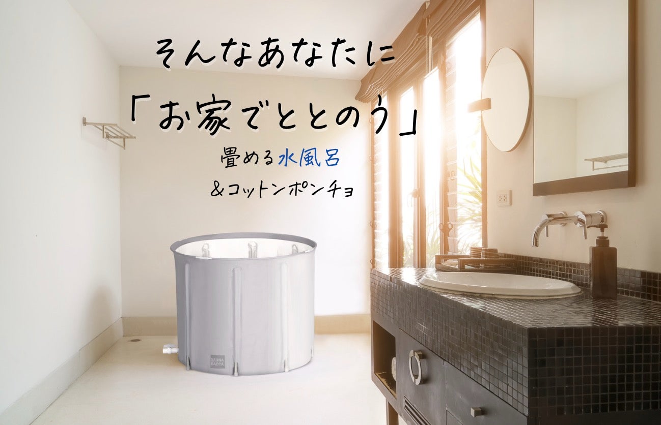 こんな時代だからサウナや温泉施設に行くのが怖い。潔癖症ではないけど汗や菌が苦手、マナーが悪い人にイライラ。もっと気軽に「ととのい体験」がでいたら、様々な声から「たためる水風呂&コットンポンチョ」を作ろうと思い約1年の期間をかけ完成させました。男性でも女性でもちょっとまだ水風呂苦手という人も楽しんでほしい。スタッフ一同の思いです。