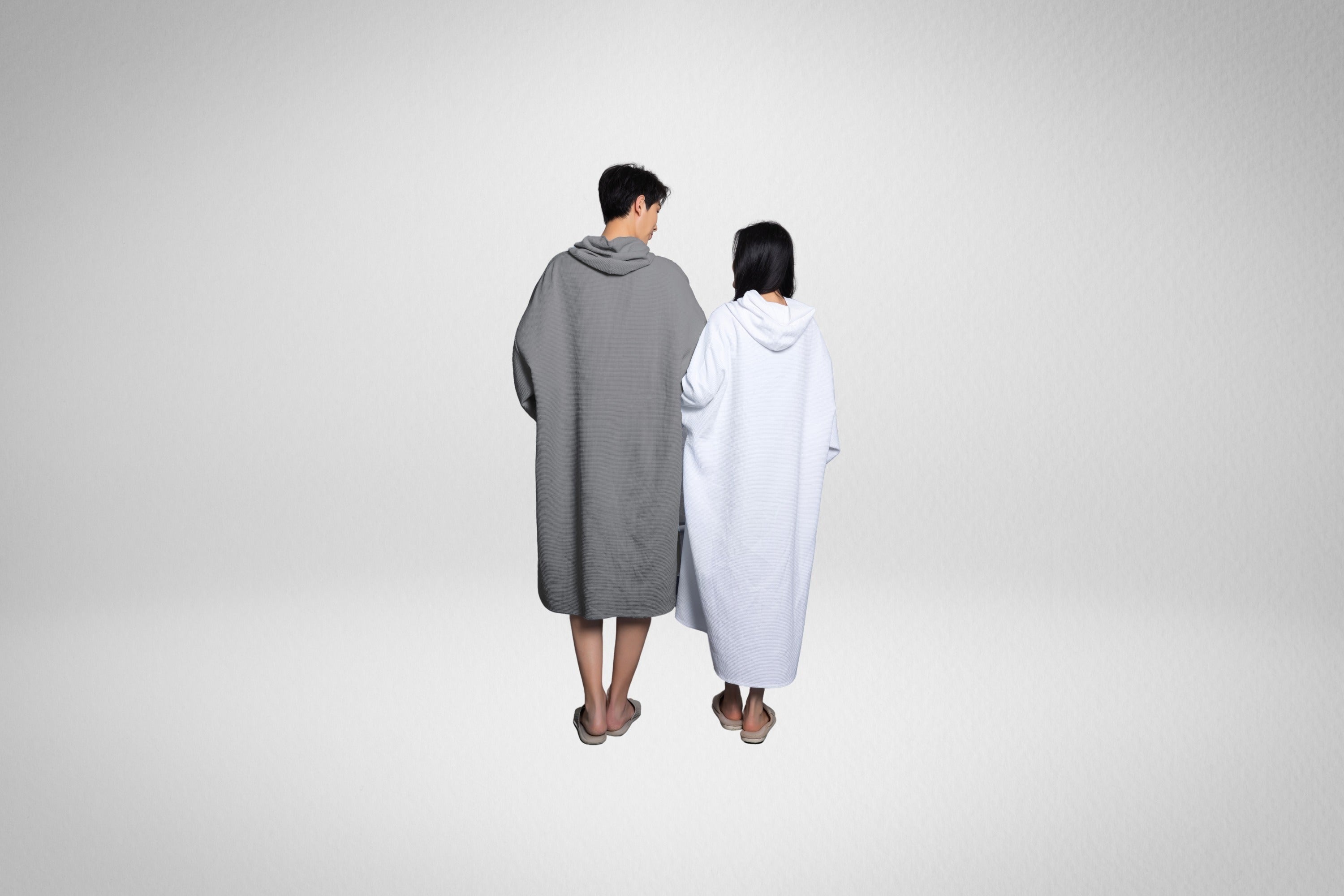 【コットンポンチョ】は、ゆったりとした男女兼用のビッグサイズ。コットン100%で肌触りが良く、通気性も抜群!“ととのった”あとのお洋服としてぴったりなんです。吸水性もあるので濡れ体のまま着てもOK!フードがついているから、髪も拭けてドライヤーの手間もいりません。まさに!ととのった後も快適に過ごせる優れもの。