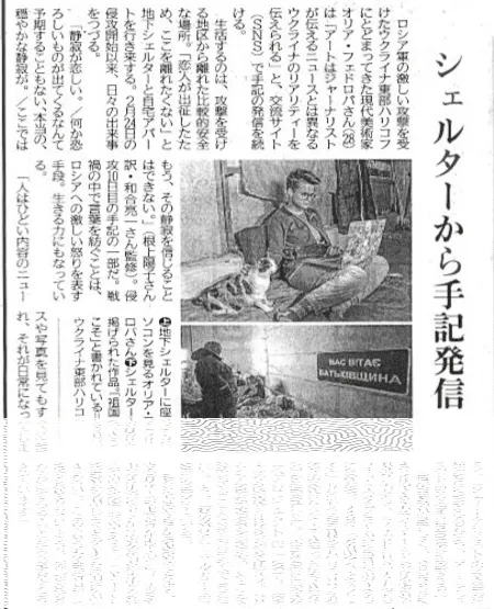オリア・フェドロバさんが、ロシア侵攻の直後にシェルター内で書かれた手記を読ませていただきました。極限の状況を知りました。爆撃音と振動のただなかで、地下で刻まれたフレーズの数々に魂が震えました。