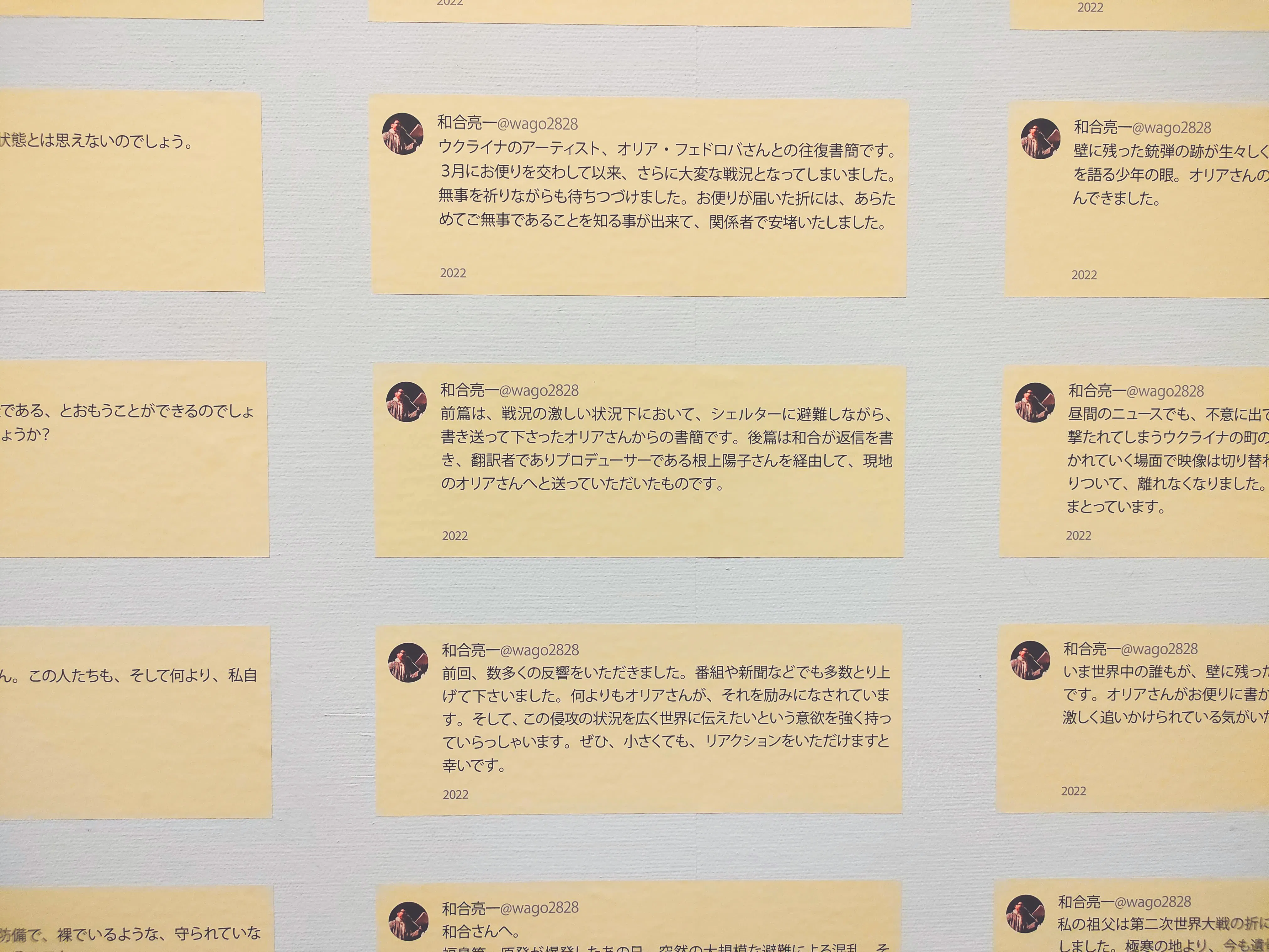 ハルキウの地下シェルターから手記を綴り続けたOlia Fedorovaは、現在進行形で福島の詩人、和合亮一氏と往復書簡をするコラボレーションプロジェクトを展開。今後更に継続し、出版も検討中。
