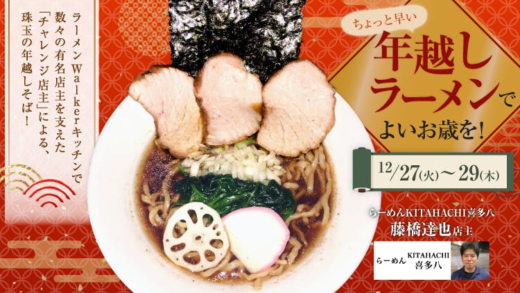 現在働いてる、埼玉県東所沢にあるラーメンWalkerキッチンにて今年も大トリを2年連続で務めされて頂きます。