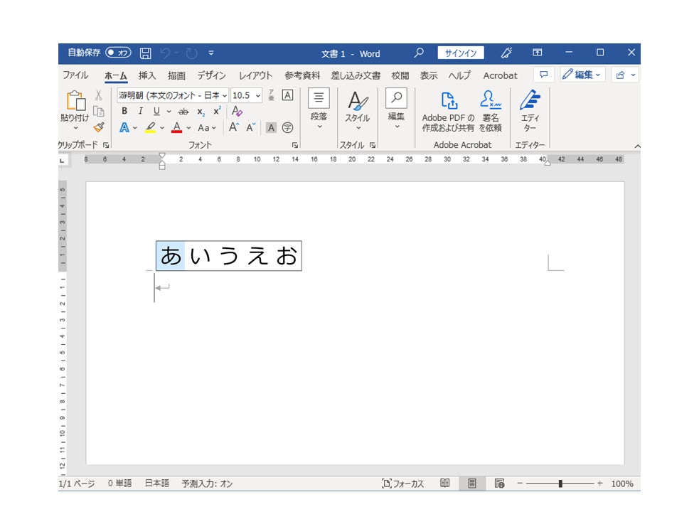 この状態でEnterや、他の行選択キーを押すと、現在選択されている、「た」で決定します。