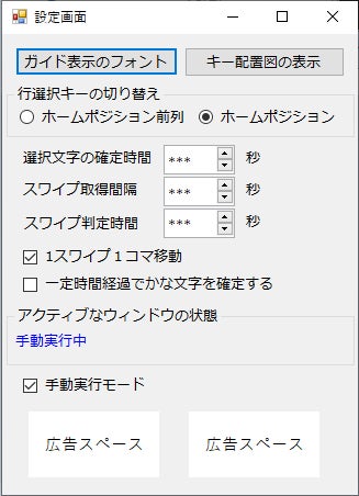 キーの配置を忘れてしまった場合は、設定パネルの「キー配置図の表示」で簡単に配置図を呼び出すことができますので安心です。