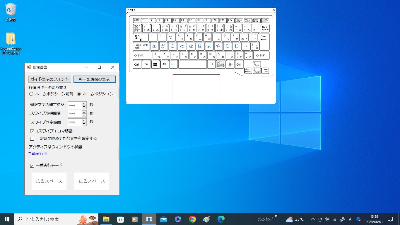 パソコンで、50音で簡単に文字入力ができるソフト『キー&スワイプ』を開発しています。