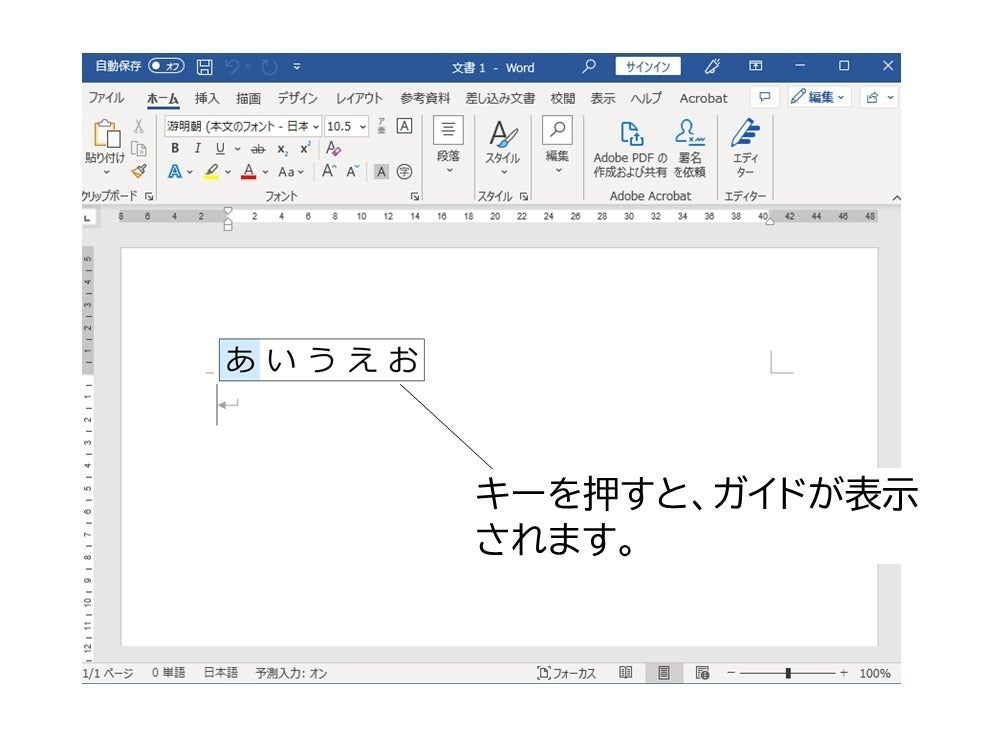 次に、「あ行」キーを押します。「あいうえお」のガイドが表示されます。
