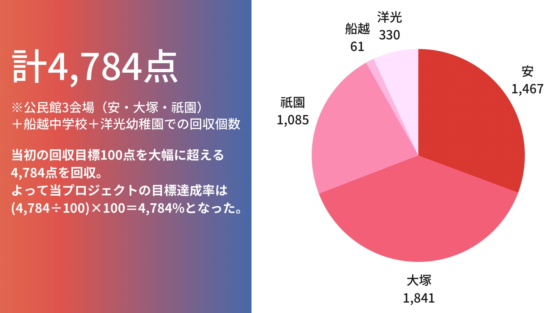 他にも中学校、幼稚園も協力してくださり、トータルで4,748点の衣類を回収することができたのです。