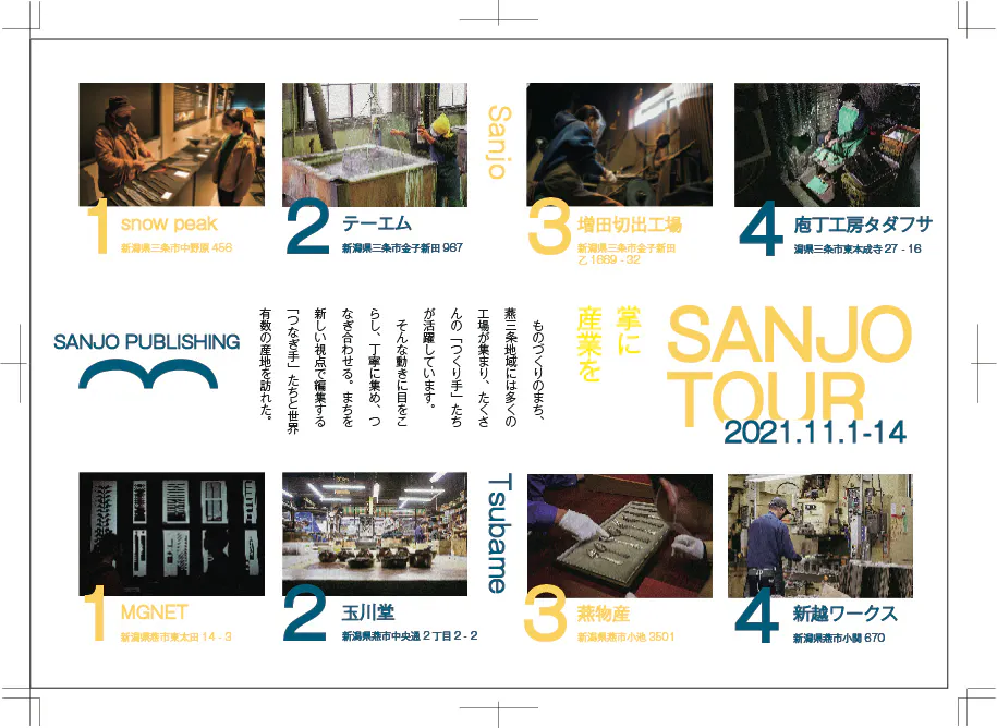 ※フリーペーパーではWebマガジンで特集する、燕三条地域をめぐる旅『掌に産業を。』シリーズも取り上げる予定。