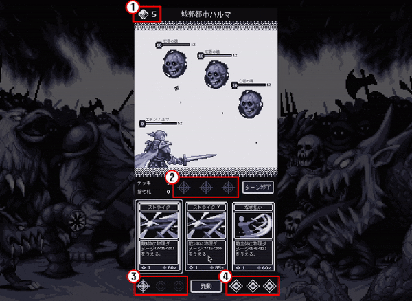 ② 命中スロット : カードの威力を決める要素であり「HARMA」の戦闘システムにおいて