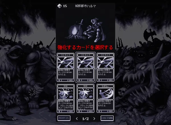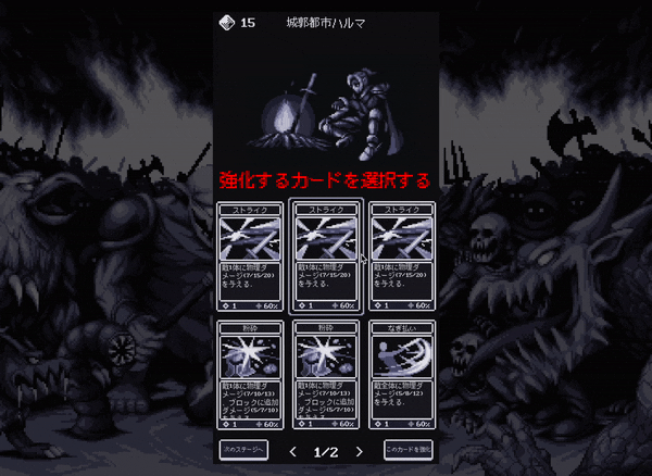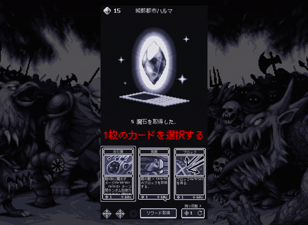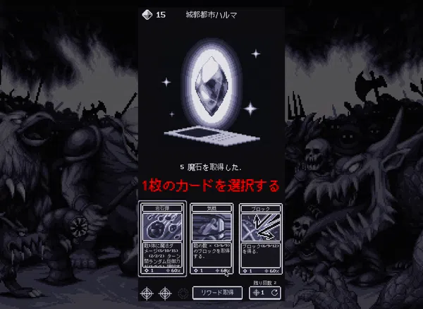 戦闘が終わったら、魔石を消費してデッキのカードを強化します。