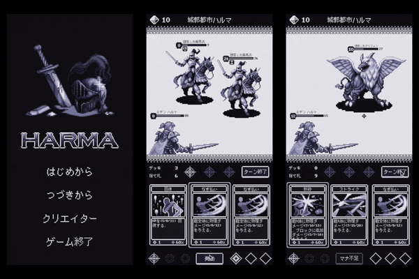 それによって、8色のレトロなグラフィックでダークファンタジーを表現した「HARMA」を制作するようになりました。