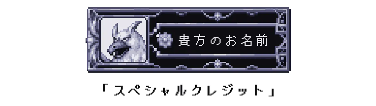 モンスター肖像画と貴方のお名前をスペシャルな枠に入れ、特別サポーターとしてスタッフロールに掲載します。