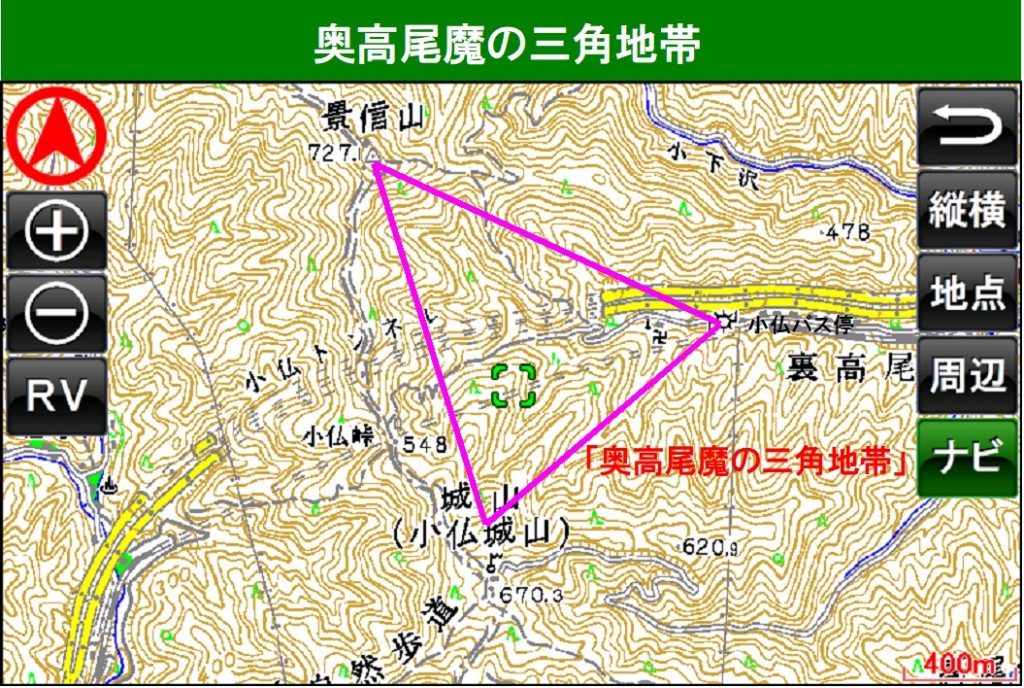 高尾山近くの山々では「奥高尾魔の三角地帯」と呼ばれる景信山、小仏城山、小仏バス停を結ぶ迷いやすいエリアがあります。何度も行ったことのあるベテランの登山者でも遭難してしまうことがある魔の三角形です。