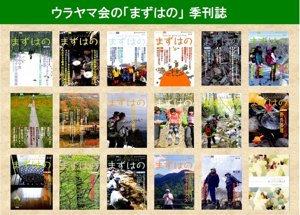 ウラヤマ会は「まずはの」という季刊誌を発行しています。この誌名は、まずは野に出よ!ということから名付けられています。