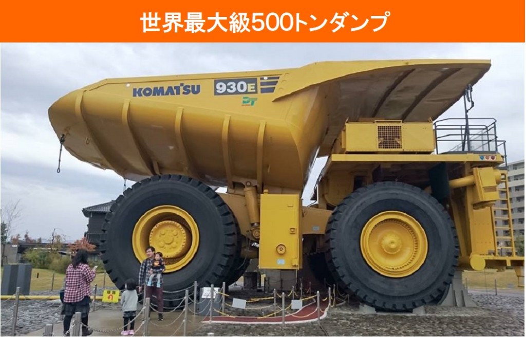 写真は、現在国内に1台しかない積載量を含め500tを超えるコマツの鉱山用ダンプです。