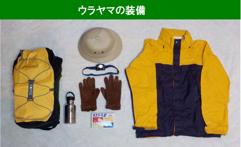 (ウラヤマ会に入会時には、なにを置いても水筒、カッパ、ヘッドランプと指導されます。特に水は捨てるほど持てと言われています。そして麓に着いたら捨ててもいいのです。