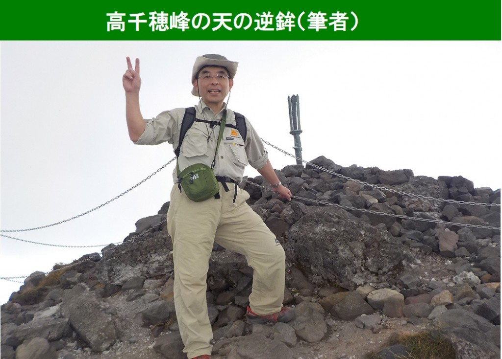 山に登ることがあります。この写真は、坂本龍馬が引き抜いたといわれる伝説の天の逆鉾です。