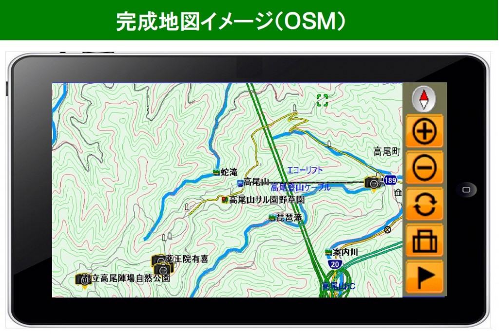 日本全域の地形図をベースにGPSやGNSS(準天頂衛星)を駆使して、通信手段がない場所でも現在地を高精度に捕捉し、道迷いを激減させ、アウトドアライフを楽しむ皆様に安心して使っていただくシステムを現在開発中です。