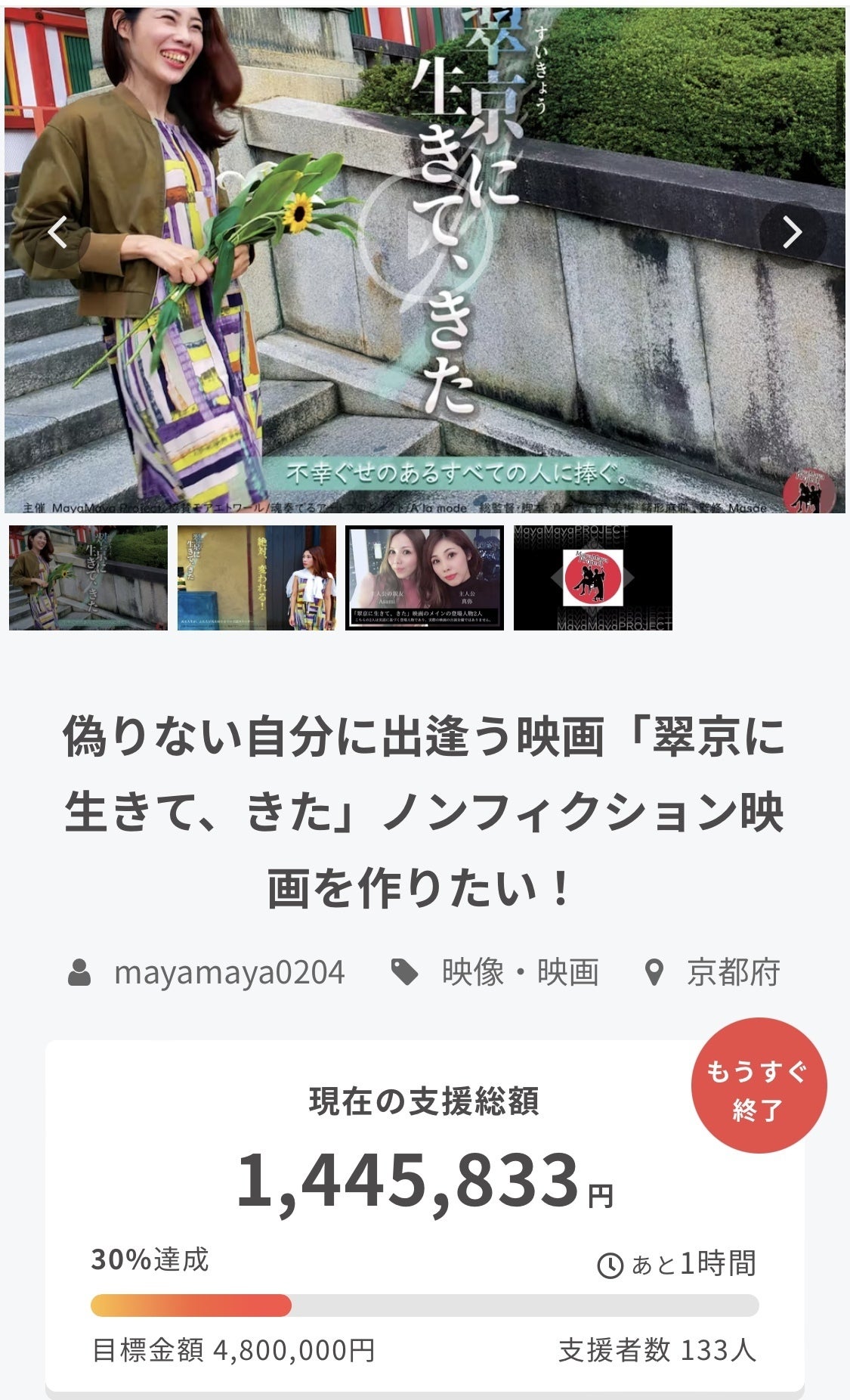 皆さまのお陰でただいま!!!!!!!支援金額144万5833円です!!!!!支援者数133名様!!!!!