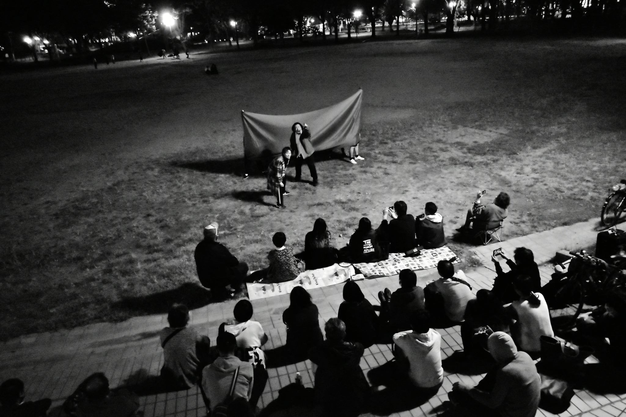 東京公演では、優しい劇団の特徴的な活動形態である野外演劇の形で、